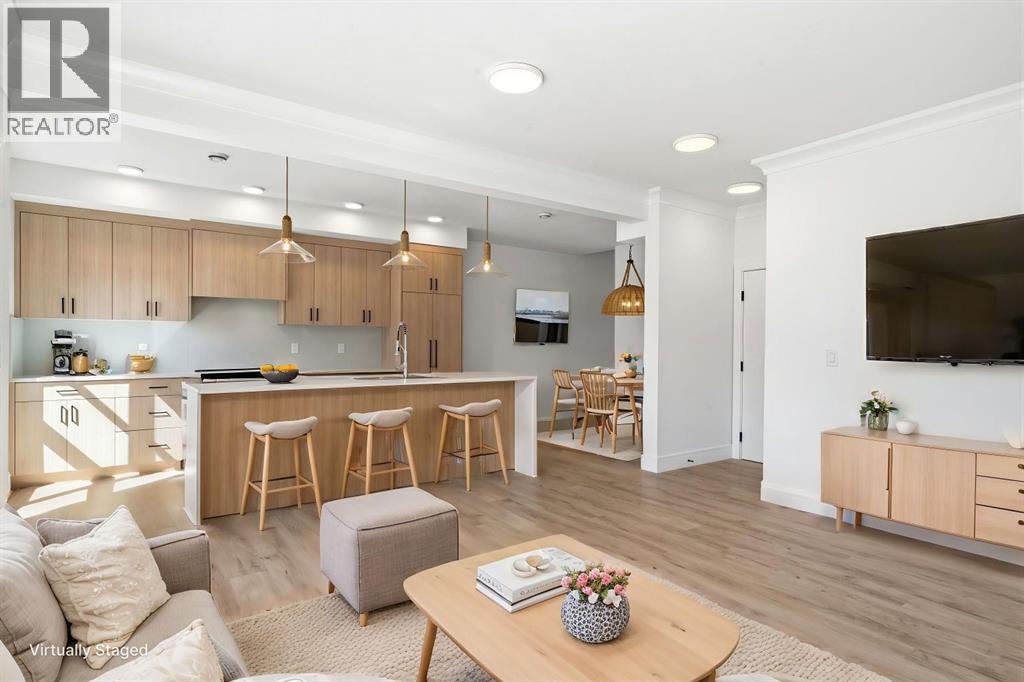 MODERN ELEGANCE IN CALGARY’S VIBRANT UNIVERSITY DISTRICT! This beautifully appointed townhome by Rohit Homes is a masterpiece of craftsmanship and contemporary style, offering an array of high-end upgrades that elevate everyday living to something truly special. Welcome to Dean’s Landing one of Calgary’s most exciting and sought-after communities.Step inside to discover beautiful luxury vinyl plank flooring, setting the tone for modern sophistication from the moment you arrive. The open-concept layout is flooded with natural light, enhanced with ample pot lights that illuminate every thoughtfully curated detail. At the heart of the home is a kitchen where form meets function white quartz countertops cascade in a stunning waterfall design, complemented by a matching quartz backsplash for a seamless, luxurious finish. The built-in refrigerator and dishwasher are concealed within cabinetry for a sleek, cohesive aesthetic, while a powerful hood fan integrates seamlessly into the overall design.Step out onto your private balcony, equipped with a BBQ gas line and rough-in for AC designed for year-round outdoor enjoyment whether you’re hosting or simply unwinding after a long day. Upstairs, the primary bedroom retreat is a true sanctuary, featuring a stunning ensuite with double vanities and the same refined quartz finishes found throughout the home. Two additional bedrooms offer exceptional versatility, with the centre bedroom boasting its own private balcony a rare and refreshing bonus. Convenient upper-floor laundry rounds out the upper level for effortless daily living.A single attached garage provides secure, practical parking with the added advantage of a conveniently located electrical panel making a future EV charger installation a breeze.Beyond your front door, the University District delivers an unmatched urban lifestyle with trendy cafes, boutique shops, scenic parks, an off-leash dog park, and a cutting-edge fitness centre. Minutes from the University of Ca lgary, Alberta Children’s Hospital, and Market Mall, this location offers unparalleled convenience for students, professionals, and families alike. Whether you’re planting roots or building your portfolio this is a lifestyle opportunity not to be missed. (31928247)