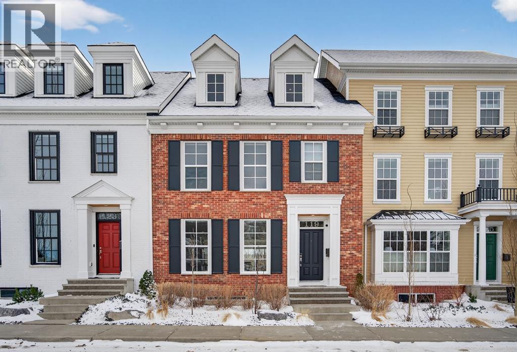 Rare opportunity to own a fully renovated townhouse in the coveted community of Currie Barracks. Flooded with natural light, the main floor showcases hardwood flooring, high ceilings, and a spacious dining area that flows seamlessly into a stunning custom kitchen featuring a quartz waterfall island, built-in stainless steel appliances, buffet with wine fridge, and extensive cabinetry. The oversized living room is anchored by a gas fireplace with a beautiful stone mantle and custom built-ins. Step outside to a thoughtfully designed backyard with a large Kayu hardwood deck and a beautifully landscaped lower garden. The insulated double detached garage is finished with epoxy flooring and custom storage. Upstairs, the primary retreat offers a massive walk-in California Closet and a spa-inspired ensuite with heated floors, soaker tub, separate shower, and dual vanities. A second bedroom with its own ensuite and walk-in closet, plus convenient upper-floor laundry, complete this level. The sprawling third level is ideal as a bedroom, home gym, or recreation room. The thoughtfully designed lower level is designed for entertaining, with a cozy media room, built-in speakers, Murphy bed with shelving, wet bar with wine fridge, and an additional full bathroom. Added highlights include a built-in sound system throughout and air conditioning for year-round comfort. Exceptionally well planned, Currie Barracks offers outstanding schools, scenic walkways, beautiful parks, and a growing collection of restaurants, cafés, and breweries, all just a short 10-minute drive to Downtown Calgary. Perfect for young professionals, this vibrant inner-city community delivers an unbeatable lifestyle. (31692282)