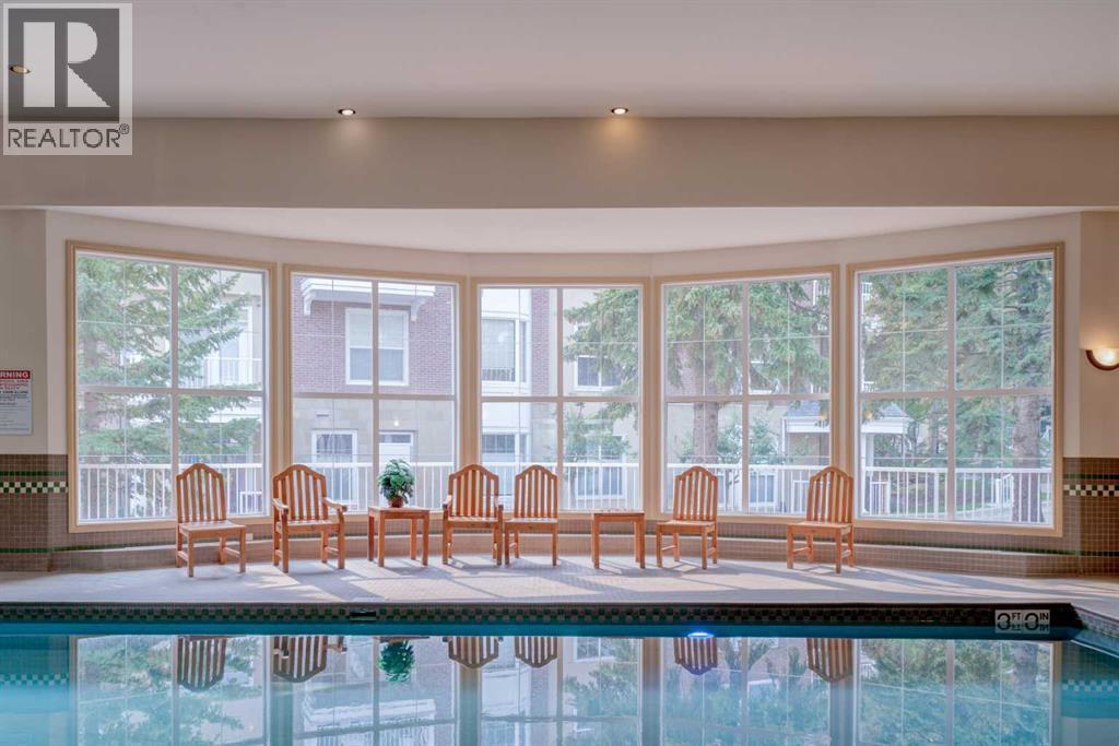 SWIMMING POOL IN DEDICATED AMENITIES BUILDING - ASSIGNED UNDERGROUND STALL - TRUE PEDESTRIAN LIFESTYLE! Welcome home to #206 of The Courtyards at Garrison Woods, an exceptional opportunity to live in one of Calgary’s most sought after inner city communities, just steps to the vibrant shops, cafés, and boutiques of Marda Loop. Units in this building rarely come up, as it is unique to find this style of complex (adults 18+ and separate amenities building), tucked in from behind the hustle and bustle of Marda Loop. This beautifully appointed 739 sqft one bedroom, one bathroom residence offers an elegant blend of comfort and functionality, ideal for professionals, first time buyers, or savvy investors. Soaring 9’ ft ceilings create an immediate sense of space, while the wide, open concept living room provides exceptional layout flexibility; perfect for both entertaining and everyday living. A cozy gas fireplace anchors the space, adding warmth and ambiance year round. The thoughtfully designed kitchen features a generous peninsula with seating, offering both additional prep space and an inviting gathering spot. Whether hosting friends or enjoying a quiet evening at home, the seamless flow between kitchen and living area enhances the overall experience. Just off of the living room, tucked in behind closet doors, is a built-in desk. This provides options such as working from home (you can close the doors on your office to have it completely separate!), a dedicated beverage station, or additional storage space. The primary bedroom retreat is naturally brightened by two large windows, which provides a sense of serenity and relaxation. The bedroom also includes a convenient walkthrough closet that leads directly into the well appointed bathroom, creating a private, ensuite-style feel. A dedicated in suite laundry room adds everyday practicality, while the private balcony overlooking the beautifully landscaped courtyard provides a peaceful outdoor escape, ideal for morning co ffees or unwinding at the end of the day. Residents also enjoy secured, heated underground parking with a car wash bay and storage lockers. Strategically located in the middle of the complex, is an impressive amenities building. Complete with a swimming pool, fully equipped fitness area, party room, and guest suites - an extension of your living space that enhances both lifestyle and convenience. All of this, just a five minute stroll to the best of Garrison Woods and Marda Loop - trendy restaurants, specialty grocers, fitness studios, and everyday essentials - offering an unmatched walkable urban lifestyle in one of Calgary’s most established and charming neighbourhoods. Fantastic value in this wider than your average one bedroom, one bathroom unit, with reasonable condo fees that include all the amenities. Contact your favourite realtor to schedule a private showing, and make #206 your new home! (31668186)