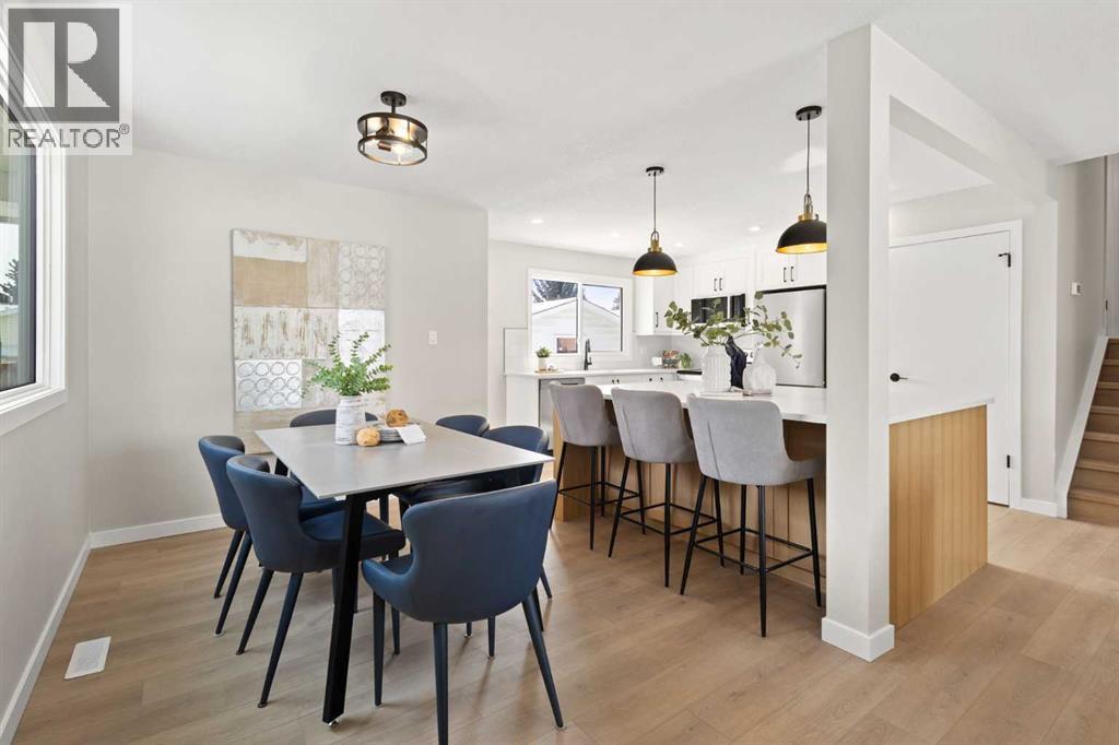 Welcome to this beautifully renovated home offering space, light, and an unbeatable location. The main floor features a bright open-concept design centered around a custom-built kitchen with a large island and abundant storage — the true focal point of the home. The dining area is enhanced by a large side window, while the living room overlooks serene green space at the front, creating a peaceful and inviting setting. A welcoming front foyer with coat closet adds convenience, and a discreet rear foyer off the kitchen provides easy access to the backyard. Oversized windows throughout flood the main level with natural light.Upstairs, the spacious primary bedroom comfortably accommodates a king-sized bed and includes a private 2-piece ensuite. Two additional bedrooms share a beautifully renovated full bathroom complete with a custom vanity.The lower level features a generous family room with a cozy corner fireplace and large windows that make the space feel bright and open. An additional bedroom and a full bathroom — both with large windows — give this level the feel of above-grade living.The basement offers yet another large bedroom plus a mechanical room with ample storage space or potential for a craft or hobby area.Fully renovated throughout, the home showcases durable vinyl plank flooring for easy maintenance and modern living.Step outside to a large backyard with a single garage and plenty of room to enjoy outdoor living. Ideally located directly across from the Botanical Gardens and within walking distance to Bow River pathways, an off-leash dog park, and the Silver Springs shopping plaza — this home perfectly combines comfort, functionality, and an exceptional lifestyle location. (31672664)