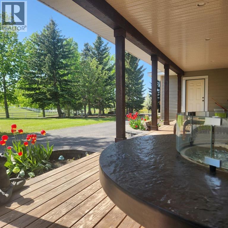 Nestled on a breathtaking 5.46 acre parcel, this exceptional acreage property offers the perfect blend of natural beauty, functional space, and refined comfort. Boasting incredible curb appeal, the home welcomes you with a charming, expansive front porch—an ideal spot to relax and take in the peaceful surroundings. Thoughtfully designed front garden beds add character, while a massive wraparound driveway provides convenience and an impressive sense of arrival. The property itself is truly remarkable, featuring gently rolling hills, mature trees, and fencing that enhances both privacy and usability. Adding unique value, the acreage is home to Bearspaw’s Poshpaws Luxury Cat Resort, a well-appointed space complete with its own 2-piece bathroom and a functional kitchenette equipped with a dishwasher, fridge, microwave, and sink. Inside, the heart of the home is the stunning kitchen, designed for both everyday living and entertaining. It features a large central island with breakfast bar seating, sleek quartz countertops, stainless steel appliances, and a gas range stove for the home chef. A window above the sink frames picturesque views of the front yard, while a spacious pantry ensures ample storage. Adjacent to the kitchen, the bright and inviting eating nook is filled with natural light and offers a seamless, open-concept flow—ideal for casual meals and family gatherings. The living room is equally impressive, highlighted by a vaulted ceiling that enhances the sense of space, along with a cozy gas fireplace complete with a mantle and elegant stone surround. The primary bedroom is a peaceful retreat, generously sized and overlooking the private backyard. The luxurious 5-piece ensuite includes a dual vanity, stand-alone shower, and a walk-in closet, creating a spa-like experience at home. A convenient main floor laundry room adds practicality, featuring a sink and abundant counter space for organization. The fully developed walkout basement is bright and welcoming, wit h large windows and direct access to the backyard. It offers a spacious family room, two additional bedrooms, and a shared 4-piece bathroom. A dedicated gym space provides flexibility and can easily be converted into a fourth bedroom with its own walk-in closet. Additional features include two furnaces, a water softener, central vacuum system, and a new septic tank—ensuring comfort and peace of mind. This extraordinary property delivers the tranquility of country living with thoughtful amenities and endless potential. (31880216)