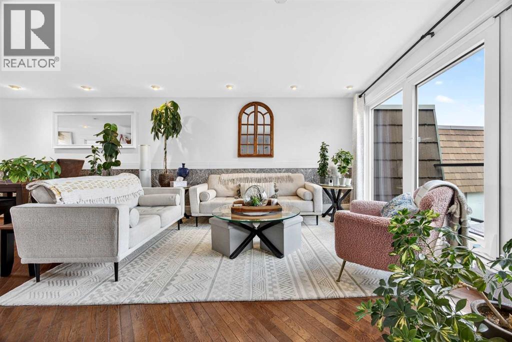 The PENTHOUSE @ RIVERVIEW l OVER 1030 SQ FT l 2 BEDROOM + FLEX + 2 FULL BATHROOMS l BALCONY w DOWNTOWN VIEW l CONCRETE BUILDING l 1 PARKING STALL + 1 RENTED STALL l ENSUITE LAUNDRY ***ATTENTION: PROFESSIONALS l FIRST-TIME BUYERS l INVESTORS l DOWNSIZERS l DISCERNING BUYERS*** A rare opportunity to own the top-floor penthouse unit in this well-maintained inner-city building — one of the largest and most impressive suites in the complex, offering over 1,030 sq ft of refined, light-filled living space. Every room benefits from generous windows, hardwood floors, flat ceilings with dimmable pot lights, and a seamless open-concept layout that feels both elegant and effortlessly livable. The kitchen shines with quartz countertops & SS appliances flowing naturally into the living and dining areas — where breathtaking downtown Calgary views take centre stage. Step onto your private balcony and let the skyline speak for itself. The spacious primary bedroom features its own ensuite, while a second bedroom and flex room offer versatility for any lifestyle. A brand new washer and dryer complete this truly move-in-ready home. The building is equally impressive — a solid, well-maintained concrete structure managed by an exceptionally proactive condo board. Recent capital upgrades include new balconies, patio windows & doors, exterior walls, and a new boiler, with no major projects anticipated ahead. The reserve fund is on track to be fully funded within a couple of years, with condo fee reductions planned to follow. Backing onto Edworthy Park & Douglas Fir Trail systems, Direct Bike Path to downtown YYC, Walking Distance from Train Station, Steps from the Elbow River pathways, 17th Avenue, and the best of inner-city Calgary living. Penthouse views - Turnkey condition. & a building you can trust. (31903781)