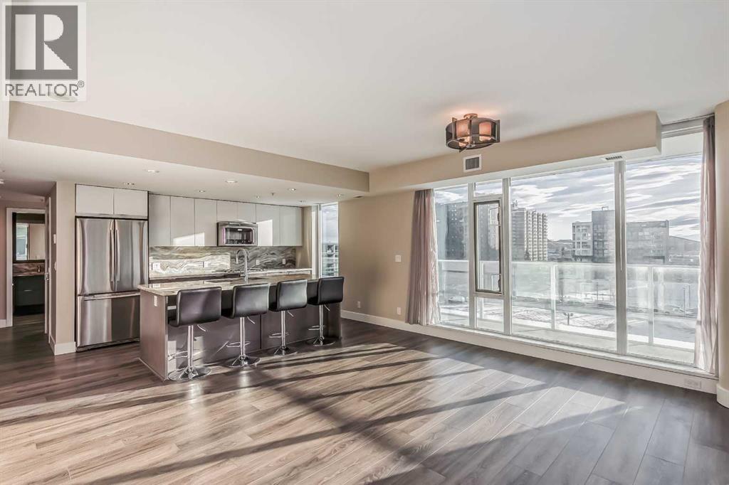 Welcome to Evolution in East Village, where elevated urban living meets exceptional design. This stunning 2 bedroom, 2 bathroom condo offers over 1000 sq ft of thoughtfully designed space, perfect for professionals, couples, or a small family seeking both comfort and lifestyle.The heart of the home is the sleek, modern kitchen featuring quartz countertops, a gas range, stainless steel appliances, and a large island—ideal for entertaining or casual everyday living. The open-concept layout flows seamlessly into a bright and spacious living area, framed by floor-to-ceiling windows that fill the space with natural light.One of the standout features of this home is the massive private balcony, offering an incredible extension of your living space. Whether you're hosting friends, enjoying a quiet morning coffee, or taking in the vibrant East Village views, this outdoor area is truly something special.The well-designed floor plan provides excellent bedroom separation for privacy. The primary suite features a walk-through closet and a private ensuite, while the second bedroom and full bath make this home ideal for guests, a home office, or a growing family. Additional highlights include in-suite laundry, central air conditioning, high-end finishes throughout, storage locker and underground parking. Residents of Evolution enjoy premium amenities including a fitness centre, sauna & steam room, concierge service, and a rooftop terrace with BBQs and panoramic city views. Book your private showing today! Located steps from the Bow River pathways, cafes, restaurants, Studio Bell, Superstore, and transit, this is your opportunity to own in one of Calgary’s most dynamic and walkable communities. (31935639)