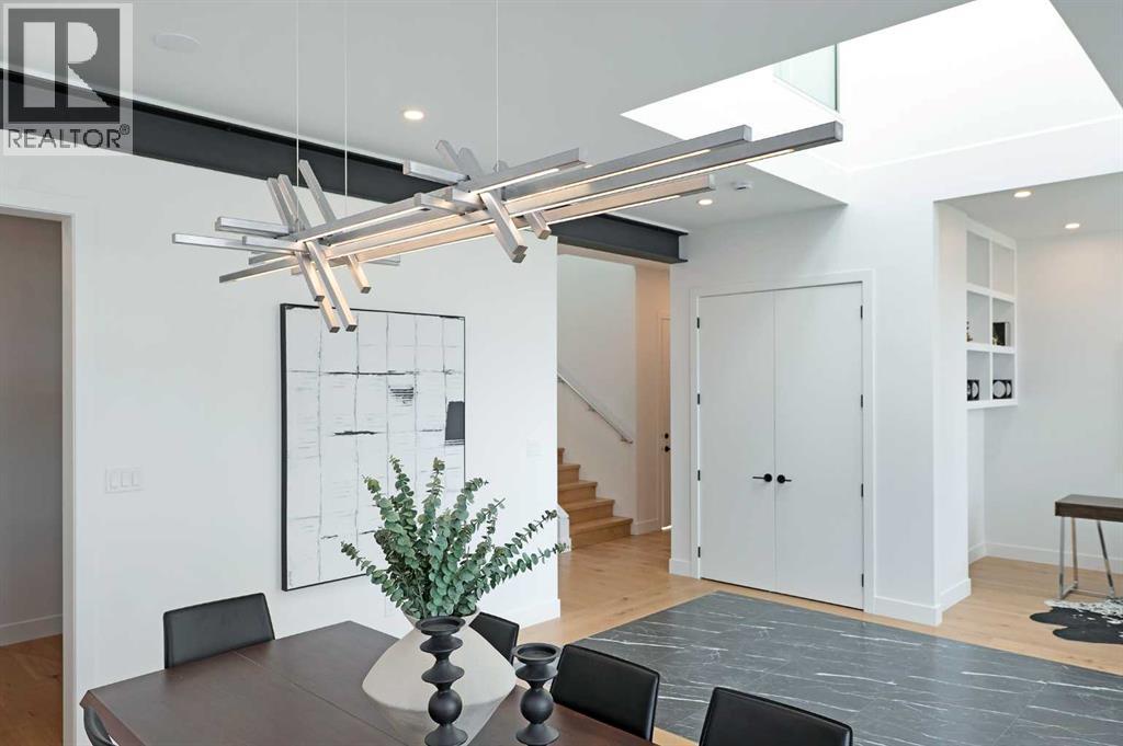 Steps from Confederation Park, this striking architect-designed residence in Mount Pleasant offers over 4,500 sq ft of meticulously crafted living space, combining thoughtful design with exceptional inner-city livability. Conceived and executed by an award-winning design studio behind several notable architectural and public art projects, the home reflects a rare level of intention, craftsmanship, and material integrity seldom seen in infill construction. Its sculptural façade, engineered to subtly respond to Calgary’s Chinook winds and enhanced with programmable architectural lighting, creates a dynamic street presence that shifts beautifully from day to night. A welcoming concrete patio and thoughtfully curated landscaping establish an inviting sense of arrival. Inside, the main level unfolds in a bright, open layout designed for both refined entertaining and comfortable everyday living. Wide-plank hardwood floors, soaring ceilings, and expansive windows create strong visual connections throughout the home. The front dining area offers an elegant setting for hosting, while the chef-inspired kitchen features an oversized Verde Alpi marble island, custom cabinetry with brass accents, JennAir appliances, and a discreet butler’s pantry with direct access to the dining room. At the rear, the living room is anchored by a dramatic feature wall clad in imported large-format tile, complemented by integrated shelving with mood lighting and a smart fireplace. Large glass doors open to the expansive rear deck and sunny south-facing yard, creating seamless indoor–outdoor flow. A private office off the foyer provides a quiet and refined work-from-home setting. The upper level hosts four spacious bedrooms thoughtfully arranged for family living. The primary retreat feels like a private sanctuary, offering access to a serene balcony, generous walk-in closet, and a spa-inspired ensuite with freestanding soaker tub, oversized glass shower, and dual vanities. A second bedroom enjoys its own ensuite, while the remaining bedrooms offer flexibility for children or guests. A well-appointed laundry room with built-in storage completes this level. The fully developed lower level extends the home’s living and entertainment spaces with a large family/media area, full bath, and two flexible rooms ideal for a gym, studio, or guest accommodation. Comfort-focused and future-ready features include central A/C, speaker rough-ins, and a full elevator rough-in connecting all three levels. Outdoor living is equally impressive with a sunny south-facing backyard, expansive deck, custom fencing, and architectural lighting. A rare, insulated triple detached garage with EV charger adds exceptional convenience and storage. Perfectly positioned steps from Confederation Park, and close to SAIT, the U of C, schools, restaurants, shopping, and transit, this remarkable home offers a rare opportunity to own an architect-designed residence where design, craftsmanship, and everyday livability converge. (31717678)