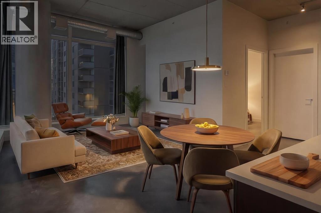 Open House - 11AM-2PM - 25/04/2026. Welcome to this stunning 2-bedroom, ultra-modern corner condo offering breathtaking panoramic views and an unbeatable inner-city lifestyle. Designed with both style and functionality in mind, this bright and spacious home features 9-foot ceilings, floor-to-ceiling windows, and a spectacular balcony perfect for enjoying Calgary’s skyline and unforgettable sunsets. From the moment you enter, you’re greeted by unobstructed views of the Calgary Tower, Central Library, and Stampede Grounds, creating an instant wow factor. The open-concept layout is flooded with natural light and showcases contemporary finishes throughout, including a sleek kitchen, modern bathroom, and thoughtful design that maximizes both space and comfort. The southwest exposure enhances the airy feel, while the partially covered balcony allows for year-round enjoyment. Additional highlights include concrete construction for superior soundproofing, in-suite laundry, a spacious foyer, central storage closet, titled heated underground parking, and assigned storage. The building offers exceptional amenities, including a rooftop social lounge and patio ideal for watching Stampede fireworks or enjoying views of the Bow River and downtown skyline, as well as a bike storage room with repair station and a dedicated dog wash. Ideally located on a quiet, low-traffic street yet steps from downtown, transit, river pathways, shops, restaurants, and entertainment, this move-in-ready home delivers the perfect blend of modern living, walkability, and vibrant urban lifestyle. (31619778)