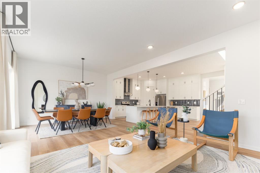 ***OPEN HOUSE Sunday, April 26, 1pm-3pm***4 BEDROOMS | 3 1/2 BATHROOMS | 2-STOREY | 3,700+ SQFT OF LIVING SPACE | DOUBLE ATTACHED GARAGE | FULLY DEVELOPED BASEMENT | CORNER LOT This Home by AVI home exudes grandeur in every detail, with meticulously chosen materials curated to create an atmosphere that captivates from the moment you enter. Inspired by modern Scandinavian design, it embraces cozy hygge vibes while offering the space and functionality families desire today. The main floor welcomes you with soaring 10-foot ceilings and an airy, open layout that feels both warm and impressive. At its heart is a beautifully upgraded kitchen, finished to the ceiling with crisp white cabinetry, quartz countertops, a brand-new stainless steel appliance package, and a spacious walk-in pantry. The open-concept design flows seamlessly into the living room, where a modern fireplace creates both a stylish focal point and a sense of comfort. A large dining area overlooks the private backyard, with glimpses of the rolling hills beyond. Completing this level is a flexible room that can adapt to your needs — whether as a home office, guest bedroom, mudroom, or playroom. Upstairs, 9-foot ceilings and expansive windows flood the home with natural light. Double doors lead to the serene primary bedroom, a true retreat featuring a spa-inspired ensuite with dual vanities, a soaker tub, and a generous walk-in closet. In the opposite wing, two additional bedrooms — each with their own walk-in closet — share a well-appointed family bath. A convenient laundry room is thoughtfully designed to keep life organized. At the center of it all sits a dramatic bonus room with a vaulted ceiling and striking blue feature wall, perfectly suited for movie nights, games, or quiet relaxation while also offering a natural separation between the primary suite and secondary bedrooms. The lower level continues the sense of openness with 9-foot ceilings and a beautifully executed side entrance, providing the a space for in-laws. A dedicated wellness room and a spacious recreation area enhance the lifestyle appeal, while an additional bedroom and full bathroom make this level ideal for guests, older children, or extended family. Outside, mountain-inspired architecture with timber accents blends seamlessly into the surroundings. With full landscaping and a finished deck already complete, this turnkey home is ready to be enjoyed from the moment you arrive. Nestled in Southwest Calgary, the community of Sirocco offers everything from scenic golf course views to vibrant local amenities and over 5 km of connected pathways. Honoring its heritage while embracing modern convenience, Sirocco is a place where rolling foothills and nearby trails bring the peace of country living within easy reach of the city. Don't miss on experiencing this spectacular well thought out home. (31769062)